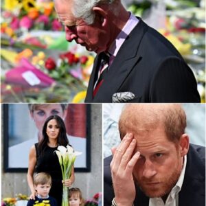 2 MINUTES AGO! “Harry… bow your head,” King Charles’s trembling voice broke the suffocating silence, a wave of sorrow blanketing the palace. Meghan returned with their two children, clutching white flowers, her face carved with grief. No press, no cameras — only the heavy weight of regret. “I am deeply saddened to announce that…” What came next will haunt Britain for generations… SEE MORE BELOW 👇👇👇