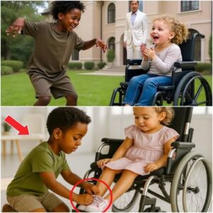 She Couldn’t Walk, But That Homeless Black Boy Made Her Smile Just By Dancing With Her. It Moved The Millionaire Father So Much That He Did Something That Touched The Whole World 😢 The sprawling beige mansion stood like a silent monument to wealth. Its grand facade gleamed under the afternoon sun, yet inside, there was no laughter, no joy—only the quiet ache of what had been lost. For over a year, the life of the millionaire’s only daughter had been defined by one piece of cold metal: her black wheelchair. Five-year-old Emily was a white girl with wild blonde curls and bright hazel eyes. Once a whirlwind of energy and curiosity, she had been paralyzed from the waist down after a devastating car accident. Now, she spent most of her days staring out of the tall windows, watching life move without her. Her father, Richard Hail, was a tall man in his early forties, with sharp features and a perfect white suit. He had tried everything money could buy. The best doctors, cutting-edge therapy, experimental treatments overseas. Nothing worked. Every failed attempt chipped away at him—not just as a father, but as a man who believed there was nothing in the world he couldn’t fix.
