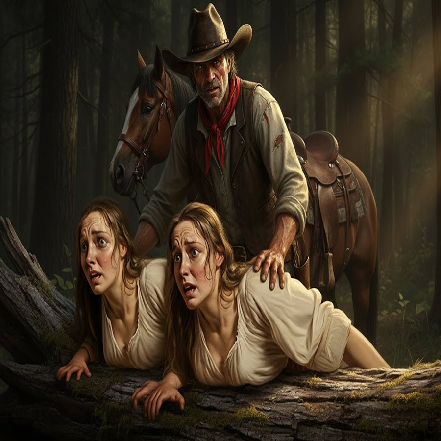 He moved like a shadow behind them, quiet, patient, watching the way the moonlight hit two strangers who looked more scared than dangerous. The first thing he said wasn’t a threat. It was calm, almost tired. You girls lost. Laya froze. Rowan turned slowly. Her hands raised. Then a horse snorted. The rope slipped and the saddle slid down with a thud.