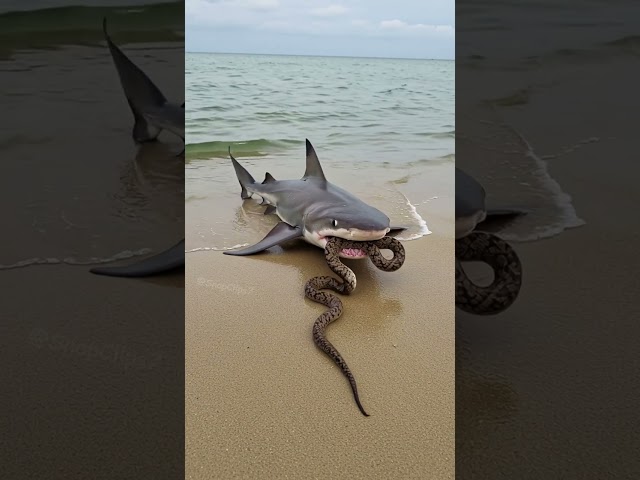 In an unprecedented event that has stunned both locals and marine biologists, a massive shark was captured on camera devouring a giant snake right on the shoreline. The incident, which took place at a popular beach, has left beachgoers in shock and raised concerns about safety and the unseen dynamics of marine life interactions.