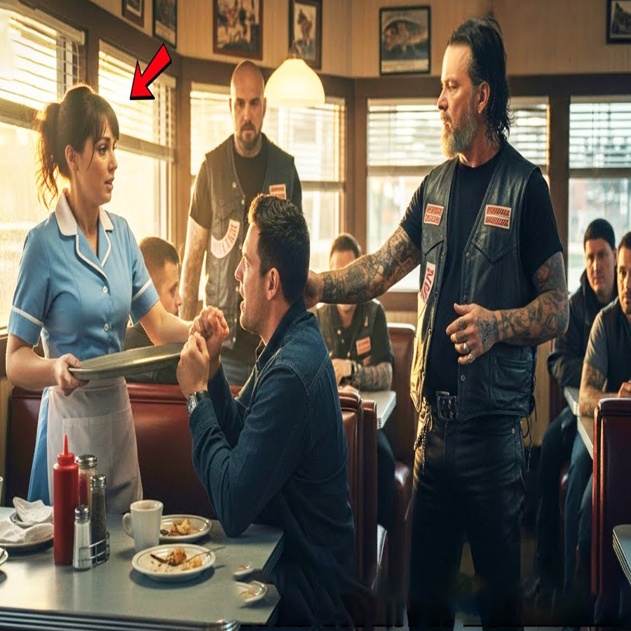 The door swung open and walked Cole Mercer, tall, broad-shouldered, leather cut gleaming under desert light. The red and white patch read Hell’s Angels Nevada chapter. Laya’s hand trembled as she poured a coffee and fate began to move. Cole took the corner booth, the one facing the door.