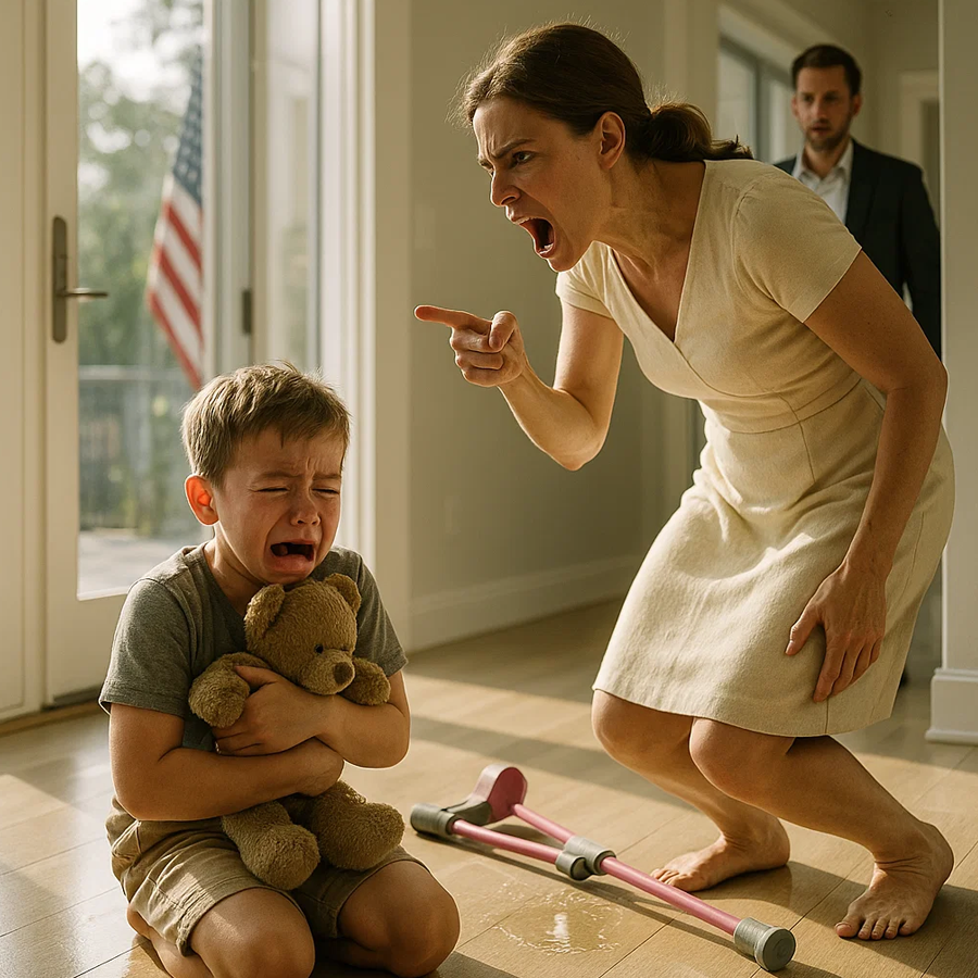 A child’s sob. Not the fragile waver of a dropped toy—the tight, frightened sound of someone trying not to cry. Then, cutting across it, a woman’s voice: measured, sharp, cold.