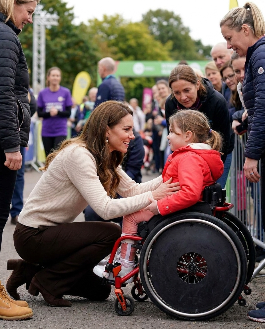 Catherine’s action was instinctive and genuine. She carefully supported the child, helping it back into its wheelchair with the grace of someone who understands the delicate balance between compassion and care. As she adjusted the child’s posture, she conversed with it through gentle, encouraging questions, reminiscent of a mother caring for her child. This simple act of concern transformed a moment of distress into a moment of connection.