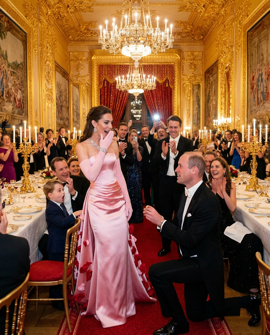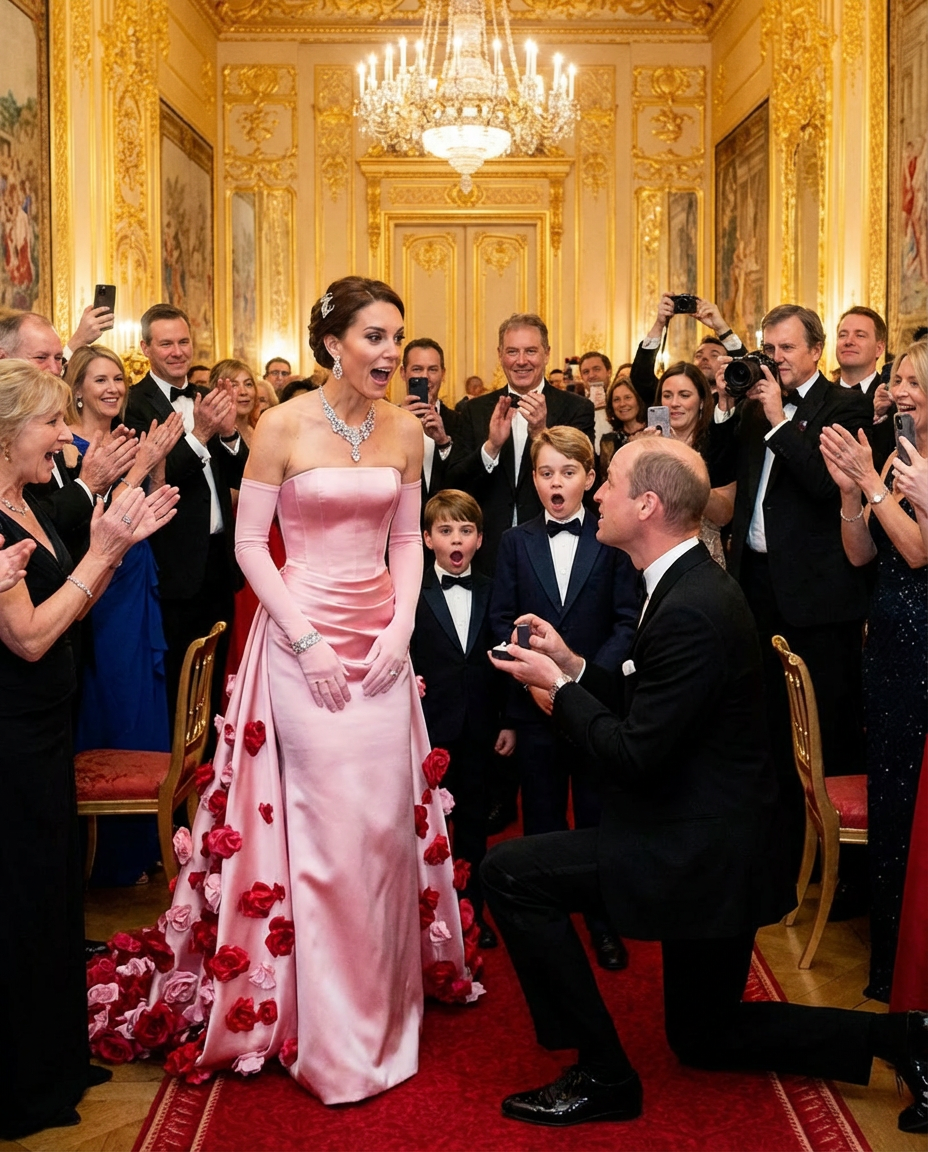 The Grand Ball at Windsor Castle, a spectacular event bringing together royalty and important figures, was marked by a moment none of the attendees could ever forget. As the evening unfolded with elegance and charm, an unexpected twist took center stage: Prince William’s emotional proposal to Princess Catherine, not once, but twice. This magical moment left the guests, including their children Louis and George, completely speechless.