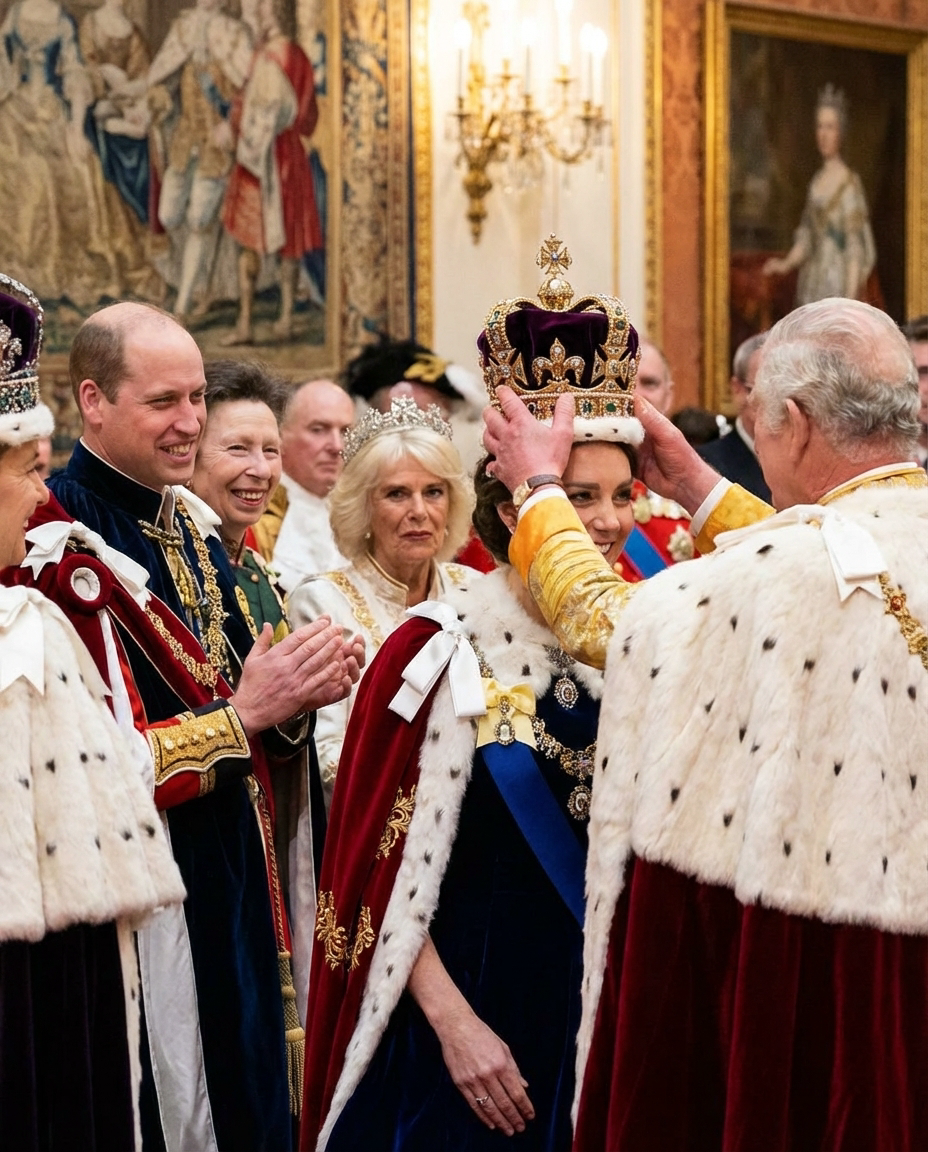 As King Charles placed the crown on Catherine’s head, William and Anne’s applause echoed throughout the halls of Buckingham Palace. Their support was a testament to the bonds they shared as a family, reinforcing the idea that despite personal differences, they remained united in their commitment to the monarchy and its future. The applause symbolized not only acceptance of Catherine’s new role but also a shared hope for a harmonious royal family in the future.