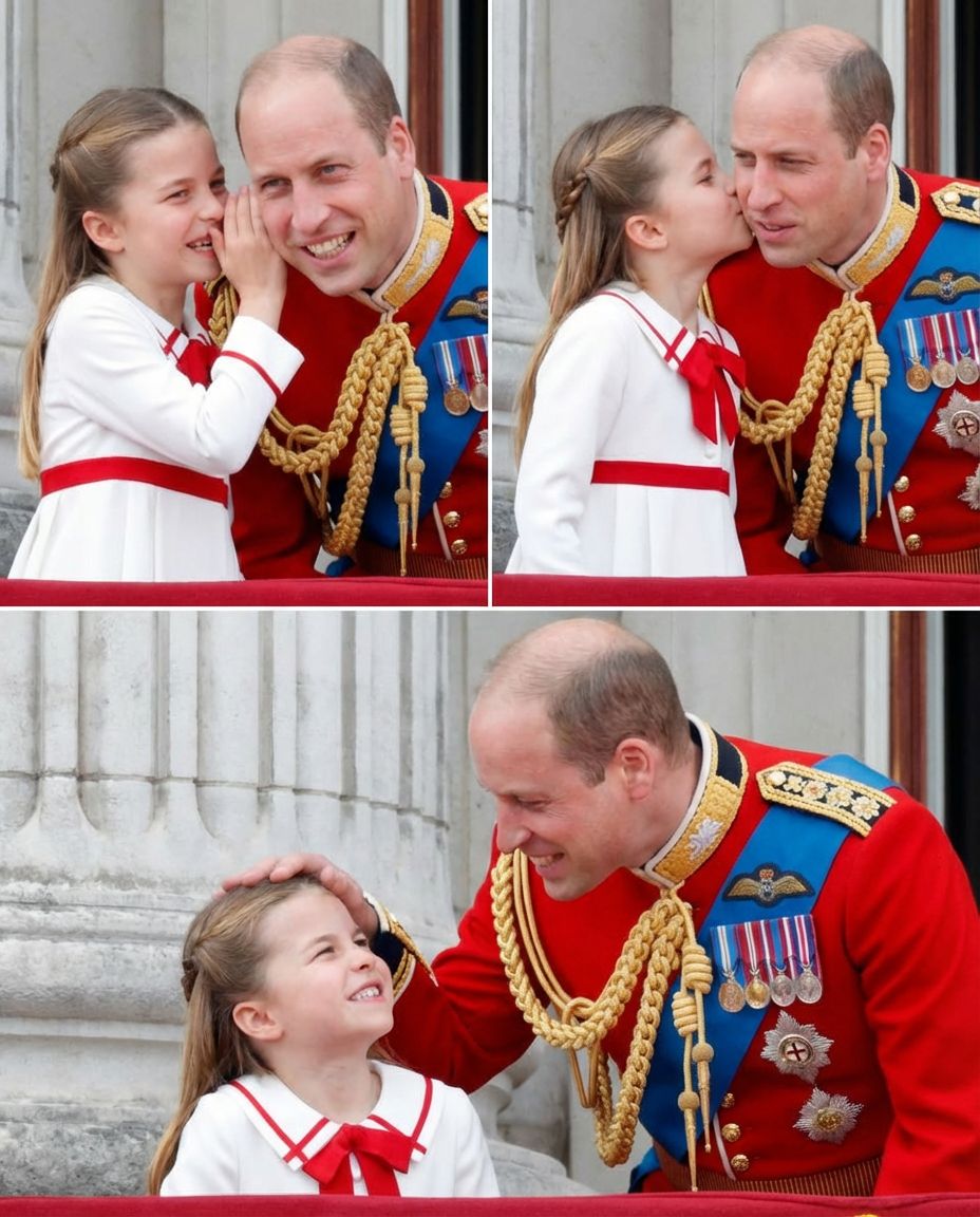 While on the balcony, a touching moment occurred as Prince William comforted Princess Charlotte. When the noise of the plane startled her, the Prince instinctively placed his hand on her shoulder, pulled her into his arms, and held her tightly to reassure her. This paternal gesture not only calmed Charlotte’s anxiety but also deeply impressed those present, highlighting the importance of a father’s support.
