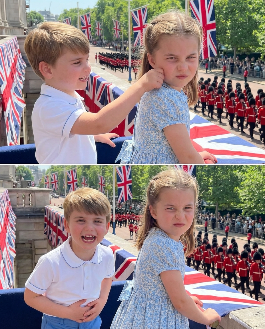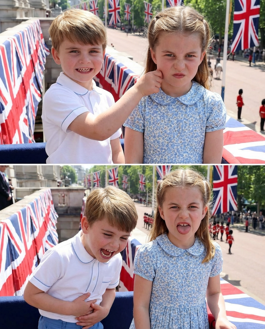 Within the British royal family, where tradition and duty are usually paramount, there are still moments that remind us of the simple joys of childhood. Recently, an adorable scene unfolded on the balcony of Kensington Palace, featuring Princess Charlotte and Prince Louis. The playful interaction between the two young princes not only warmed the hearts of viewers but also showcased their close sibling bond.