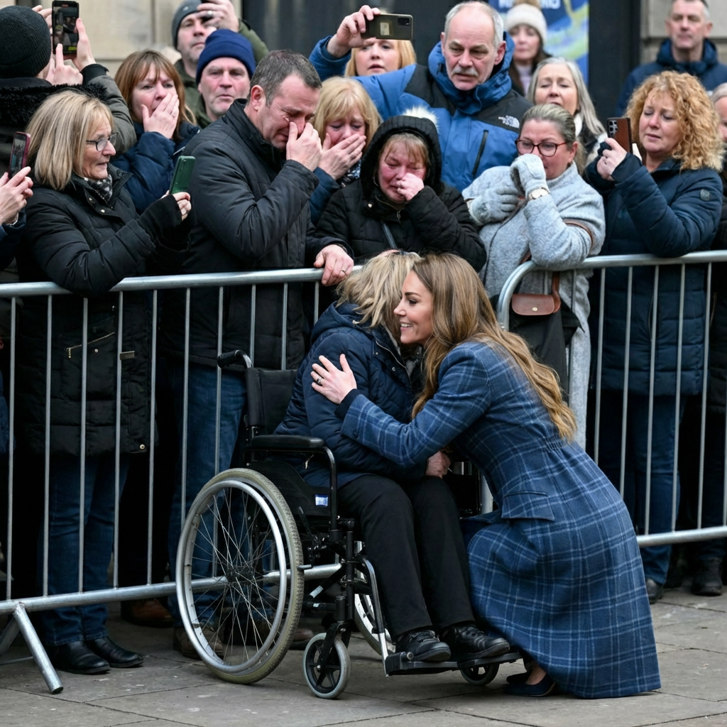 The event took place during a royal visit to a UK community gathering. As Catherine and William interacted with attendees, one individual, overcome with emotion, expressed their admiration for the Princess. Catherine then broke from her formal duties and spontaneously hugged the stranger, an act of kindness that captured the attention of everyone present. Prince William, visibly surprised, offered a rare sight of authentic emotion from within the royal family.