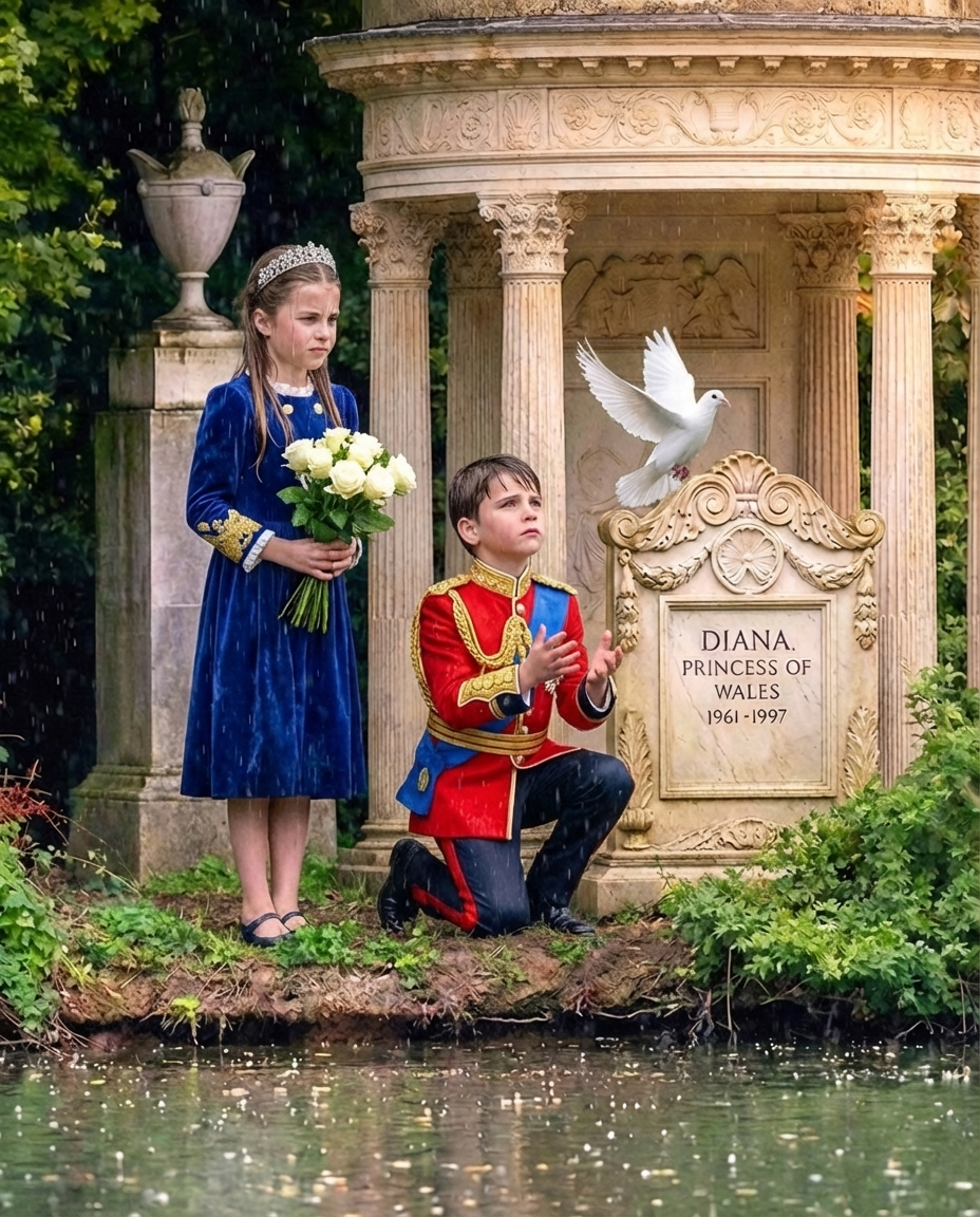 The image of Charlotte and Louis standing before Princess Diana’s grave in the rain is a powerfully evocative scene. It reminds us of the fragility of life and the importance of honoring those who have passed away. For anyone witnessing this moment, it would be an incredibly moving experience, encapsulating the essence of family, love, and remembrance.