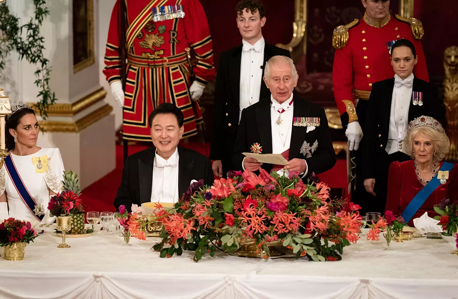 At Tuesday evening’s banquet, King Charles gave a speech starting with a line delivered in Korean welcoming their guests to Britain, which was met with applause.