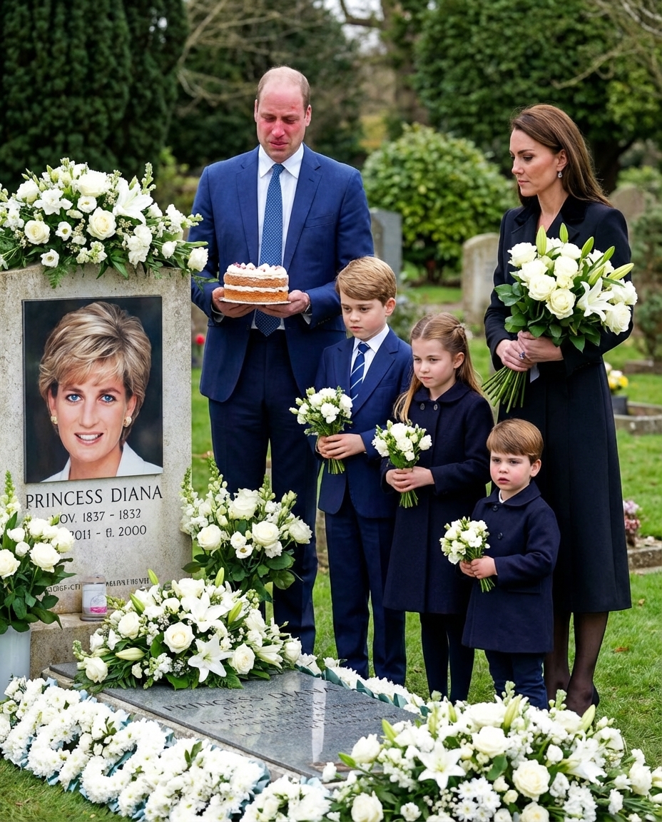 Catherine and her children, Prince George, Princess Charlotte, and Prince Louis, joined in this intimate celebration by carrying Diana’s favorite white flowers. The choice of these flowers held special significance, reflecting the simplicity and elegance characteristic of Diana’s personality. This act of reunion demonstrated the family’s commitment to preserving Diana’s memory, ensuring that her legacy continues to influence their lives.