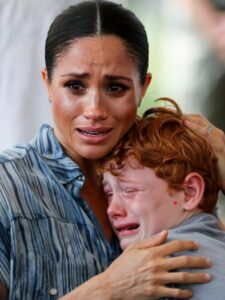 The quiet California evening erupted into chaos when Meghan Markle—disheveled, pale, and visibly shaken—burst through the doors of a local police station just five minutes ago. Officers froze as she stumbled toward the front desk, breathless, her voice trembling uncontrollably.