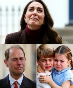 In this fictional account, the palace grounds were unusually quiet—so quiet that even the wind seemed to hesitate. Princess Catherine stood beneath a pale sky, lifting her face upward as tears streamed freely. Those nearby would later say the grief felt overwhelming, as if the walls themselves were mourning.