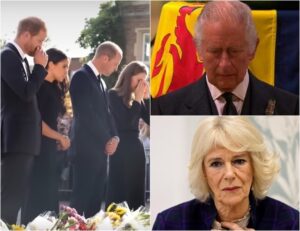 Behind him, Prince Harry appeared, head bowed, lips pressed tight as though holding back a scream. Meghan followed, pale and silent, her hands shaking as she clutched her coat. The brothers walked side by side — not speaking, not arguing, simply united by a grief no royal protocol could hide.