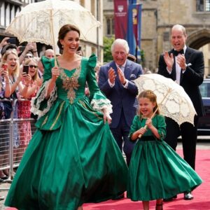 Thay đổi trang phục múa dạ hội khác cho công nương Kate và công chúa Charlotte nhưng vẫn thể hiện sự sang trọng lộng lẫy. Thêm vua Charles và bà Anne đứng xem vỗ tay bên cạnh cha con hoàng tử William. Thêm nhiều nhà báo phóng viên đứng xung quanh chụp hình.
