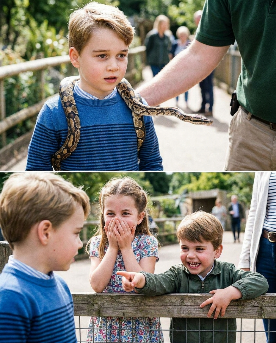 Prince Louis, the youngest of the three, contributed to the fun with his mischievous nature. Initially startled, his surprise quickly turned into giggles as he watched the scene unfold. His sparkling eyes reflected his amazement and curiosity, prompting him to move closer for a better look at the python. Louis’s hearty laughter echoed throughout the zoo, brightening the spirits of everyone around him.