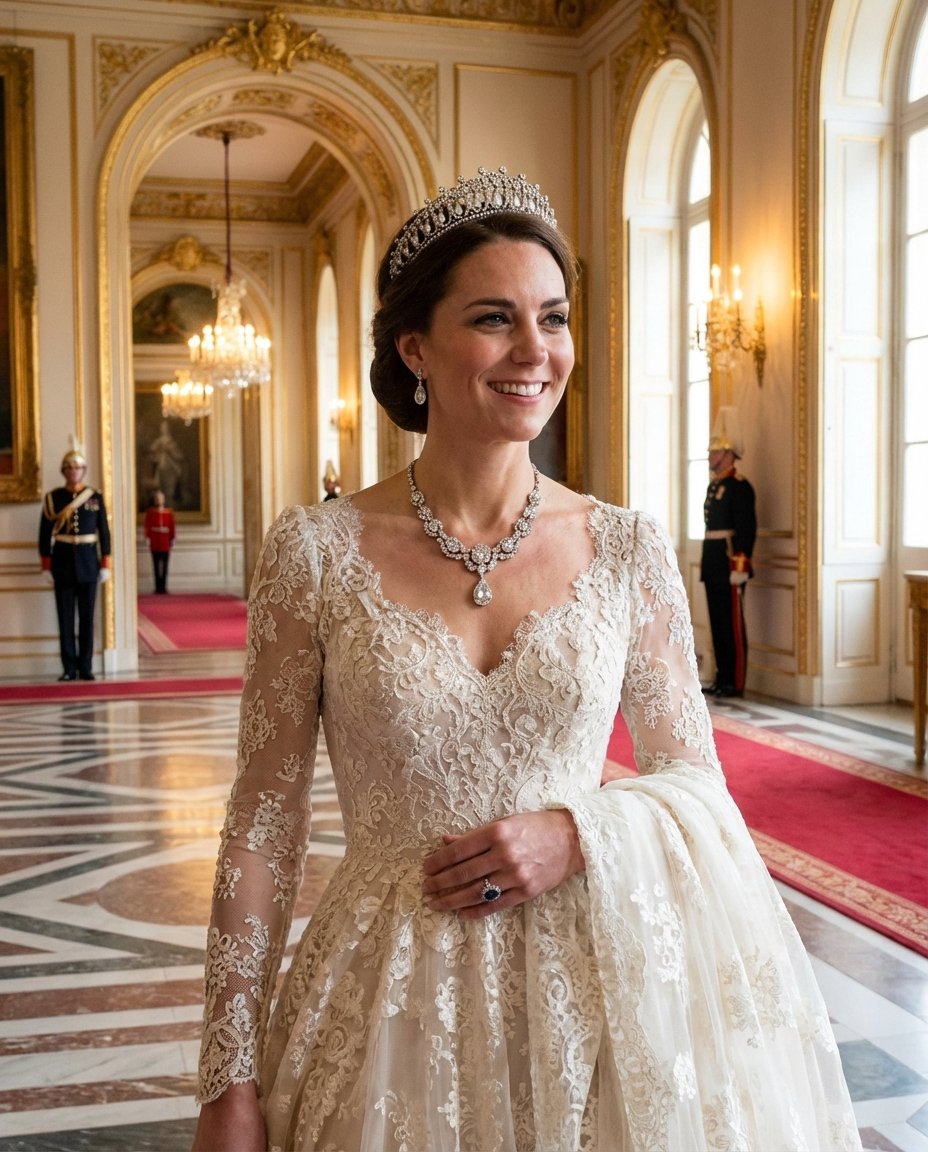 With its illustrious royal history, the famous tiara was once worn by Princess Diana. Each time Catherine wears the Love Knot tiara, she not only honors Diana’s legacy but also connects with the deep roots of royal tradition. Its exquisite design and opulent beauty make it one of the most sought-after tiaras in the world, with an estimated value of several million dollars.